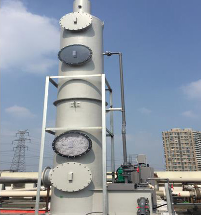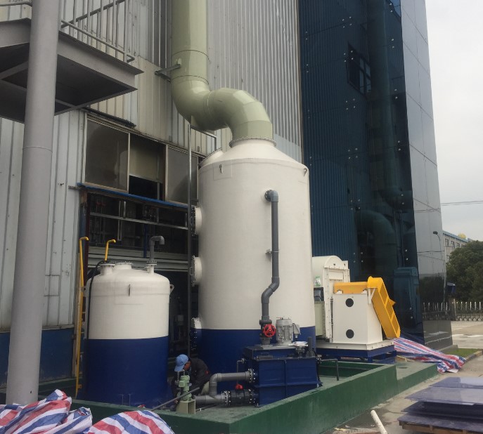 - 该套设备于2015年由上海协和公司制造并安装完成。系统采用了FSW-80洗涤塔,并针对Nox气体的处理需要加入了自动药液供给系统。 至今运转良好,排出口浓度远低于当地环评标准。该系统属于小型废气处理系统,单台设备处理能力为33m3/min