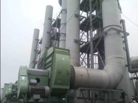 - 此工程废气处理系统使用的是协和化工FSW-340型洗涤塔。整套系统由两座洗涤塔及一台中继风机组成,全系统满负荷处理排气上限为1000m3/min。该系统2013年完成现场安装后交付客户使用至今。